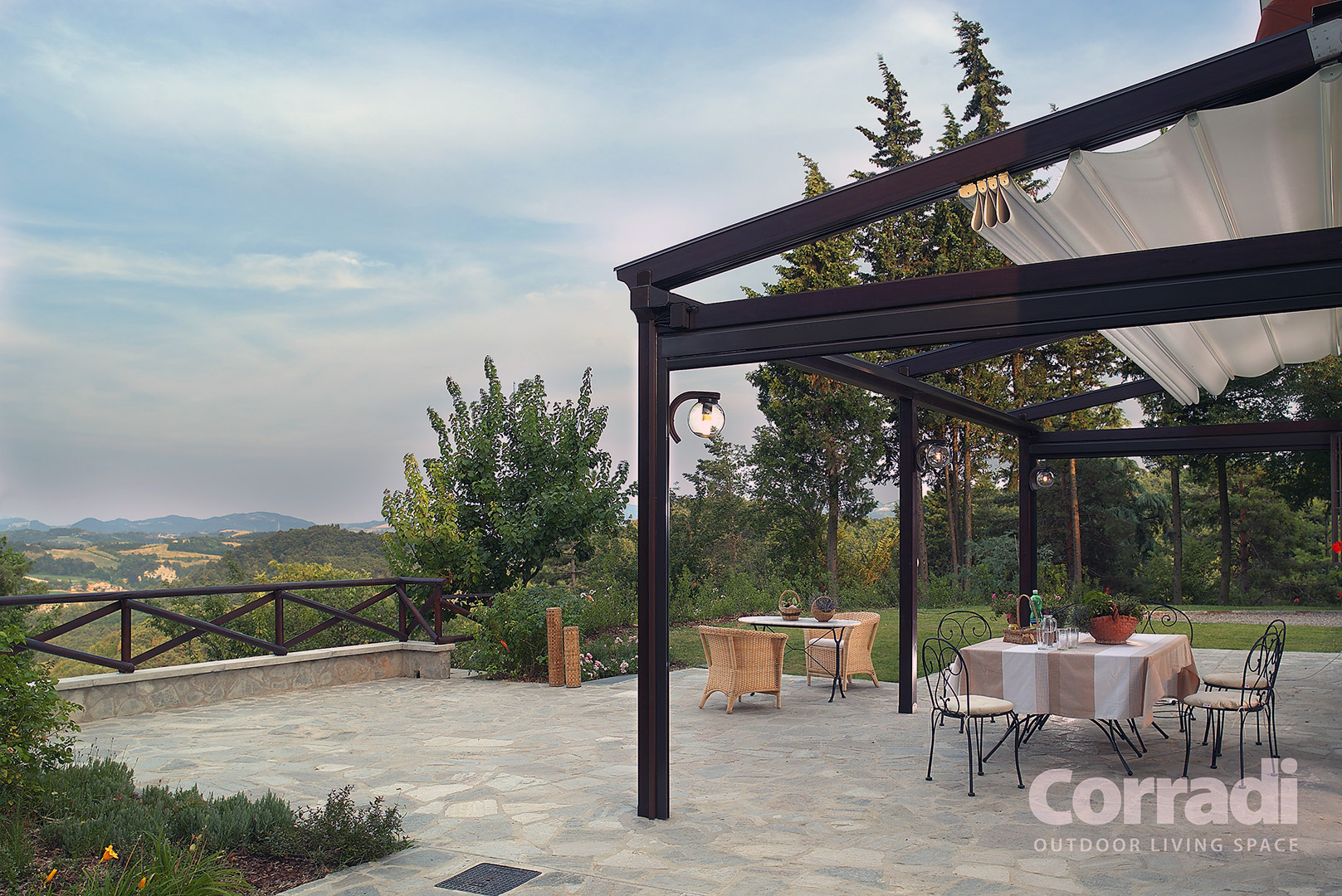 Corradi USA (R) is a subsidiary of Corradi in Italy, which is an international leading maker of architectural outdoor living products. Our comprehensive line of shading products exemplify European design and functionality. Italian engineering expertise combined with our American manufacturing excellence have made Corradi USA (R) uniquely qualified in transforming ordinary outdoor spaces into relaxing destinations. Shading solutions offered include pergolas, louvered roofs, exterior solar screens, retractable shading systems and our industry leading collection of fabrics.